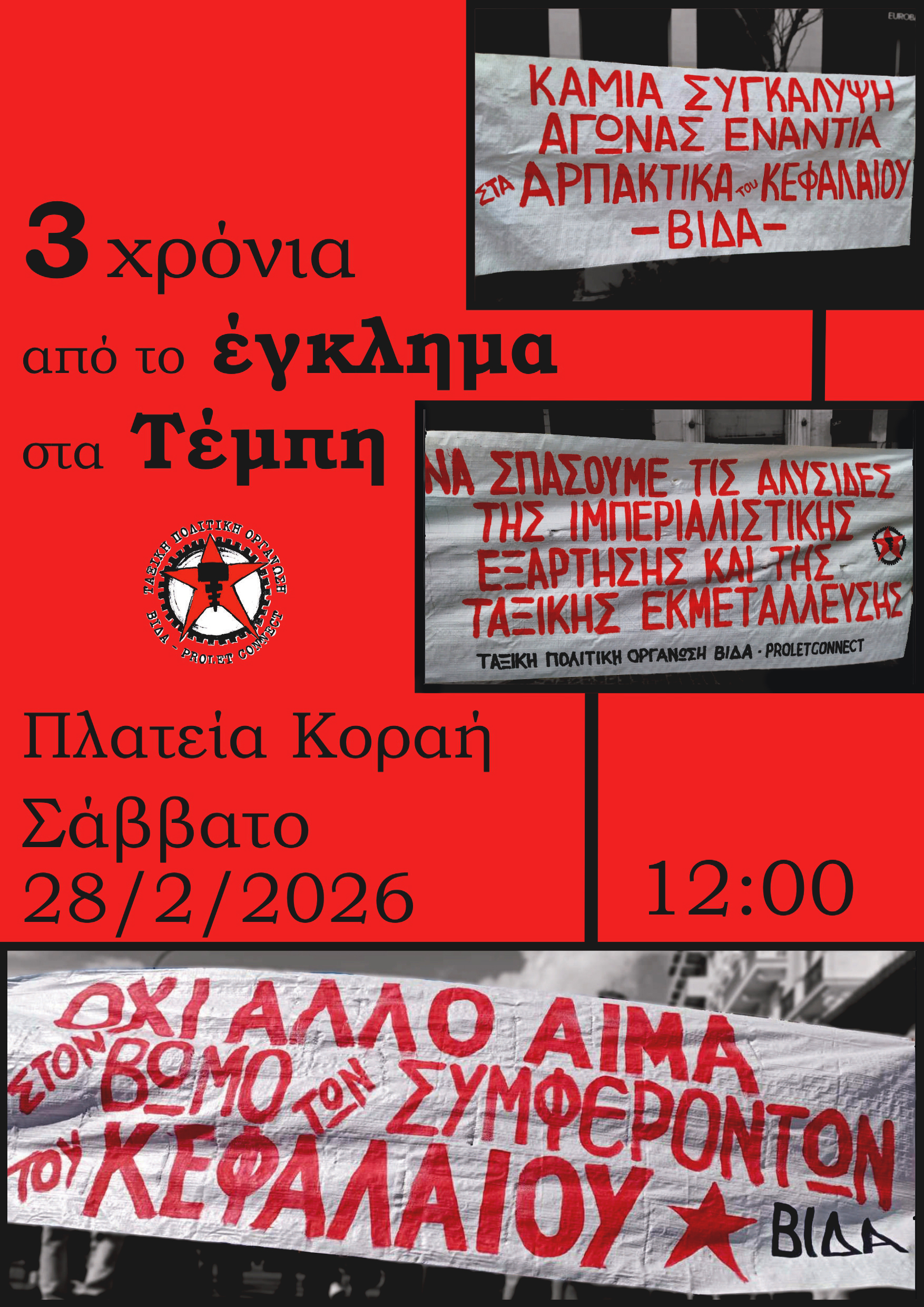Αρχική ΑΦΙΣΕΣ 3 χρόνια από το έγκλημα στα Τέμπη (Συγκέντρωση της ΒΙΔΑΣ) ΑΦΙΣΕΣΒΙΔΑΚΑΛΕΣΜΑΤΑ 3 χρόνια από το έγκλημα στα Τέμπη (Συγκέντρωση της ΒΙΔΑΣ) 24/02/2026